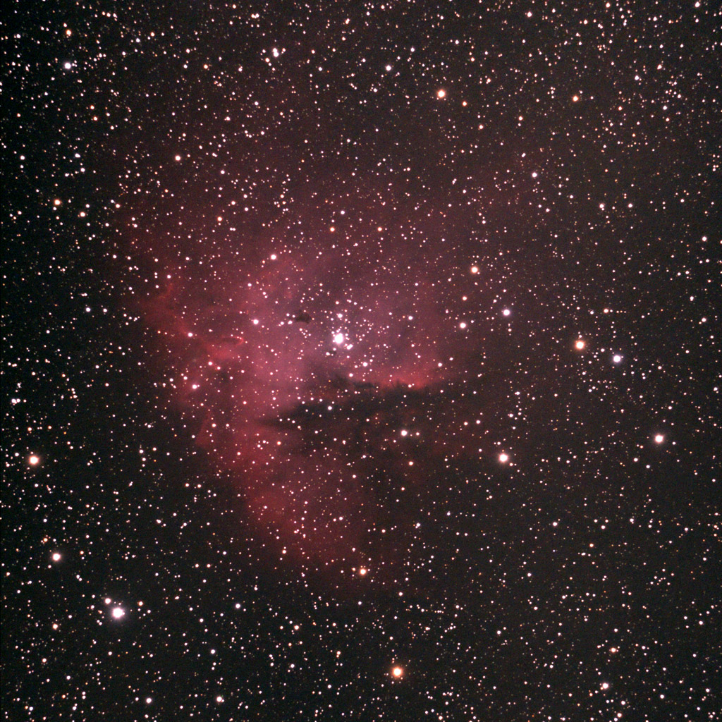 Description: A relatively large emission nebula with many interesting brightenings and dark spots.