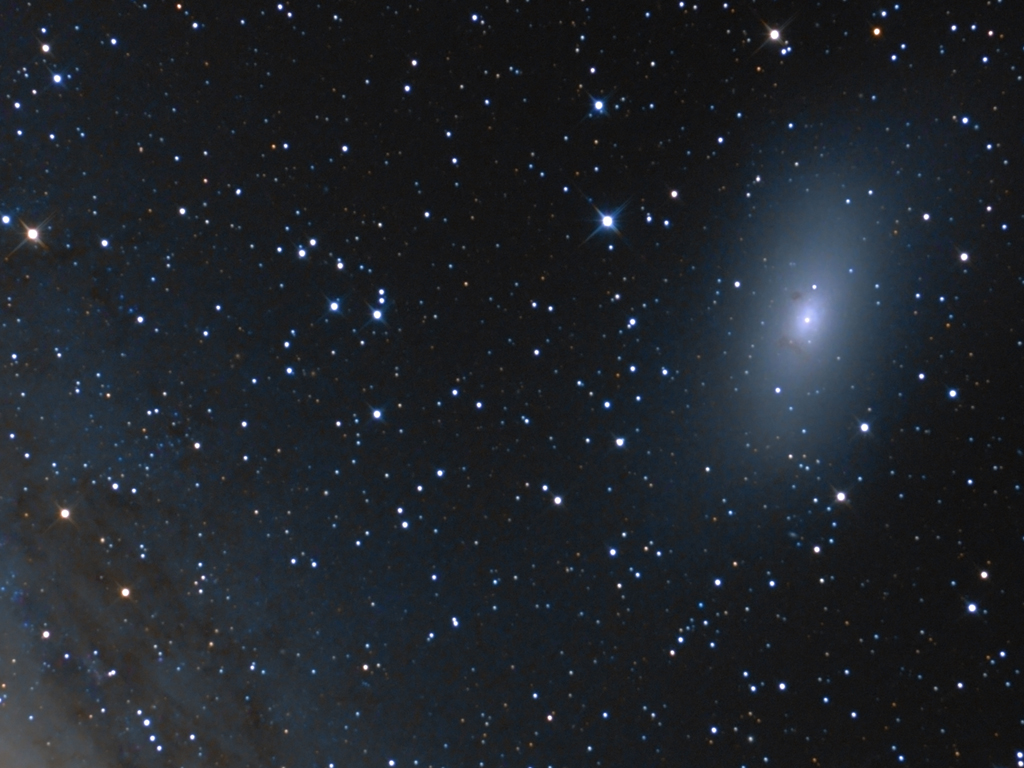 Description: M 110 is a dwarf elliptical galaxy with faint dust clouds. In the left area of the slide, part of the known M 31.